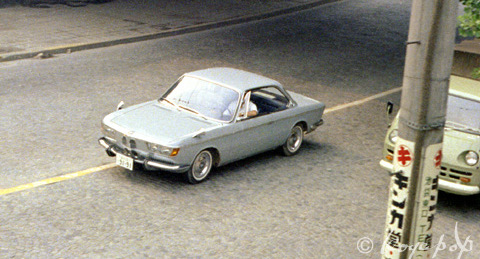 Одинокий и неуместный BMW2000CS на улице Токио в 1967 году