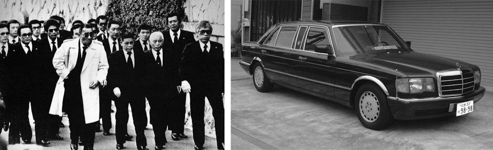 Лидеры крупнейшей группировки Ямагути-гуми в 88-м году, на улице в Кобэ. Справа — очень уважаемый ими тип транспортного средства